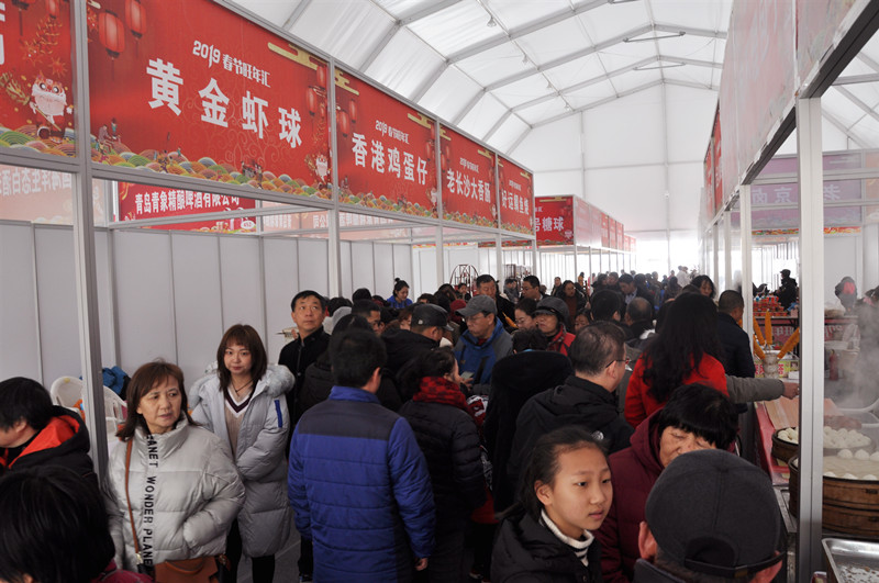 旺年匯期間,啤酒城變成歡慶的海洋。跑驢、戲曲選段、開門紅、大頭娃娃、旱船、鑼鼓鬧春、財神納福等豐富多彩的民俗藝術(shù)節(jié)目輪番上演,與市民一道歡喜過大年。同時,各式各樣的糖球、天津狗不理包子、臺灣旋風(fēng)薯塔等不同地域的美食,讓市民和游客爭相前來購買品嘗。
