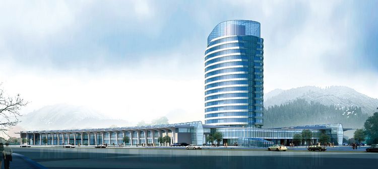 nbsp;  該項目位于上海路以西、泰山路以北、靈山路以東、東新村以南,總投資額4.58億元人民幣(含拆遷補償費1.28億元),占地面積200畝(其中站房、附屬用房及站場用地164.51畝,商業及酒店用地35.49畝),規劃總建筑面積46065平方米(其中主站房區9973平方米、附屬用房4211平方米;商業及酒店面積28068平方米,地下3813平方米)。按照一城一站模式、國內一流汽車站標準建設的集客貨運輸、餐飲娛樂、旅游等服務功能于一體的一級客運站,設計日客流量達3萬人次,日進站客運班車達600輛。