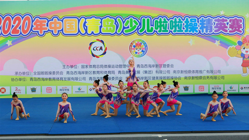 11月1日,2020年中國(青島)少兒啦啦操精英賽在青島西海岸新區金沙灘啤酒城圓滿落幕,來自全市56個單位的近1200名少兒啦啦操選手參與花球啦啦操、技巧啦啦操的規定套路和自選套路的比賽。