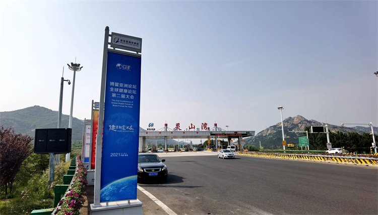 標有大會“健康無處不在—可持續發展的2030時代”主題的展板被安置在各路段、區域醒目處,設計精致的路側道旗在綠樹繁花之間排列有序,會議中心現場各項籌備工作緊鑼密鼓地進行……5月30日,記者走訪青島西站、黃島東收費站、靈山灣收費站等地,西海岸新區已然處處充滿“博鰲元素”,彰顯熱烈迎賓的濃厚氛圍。