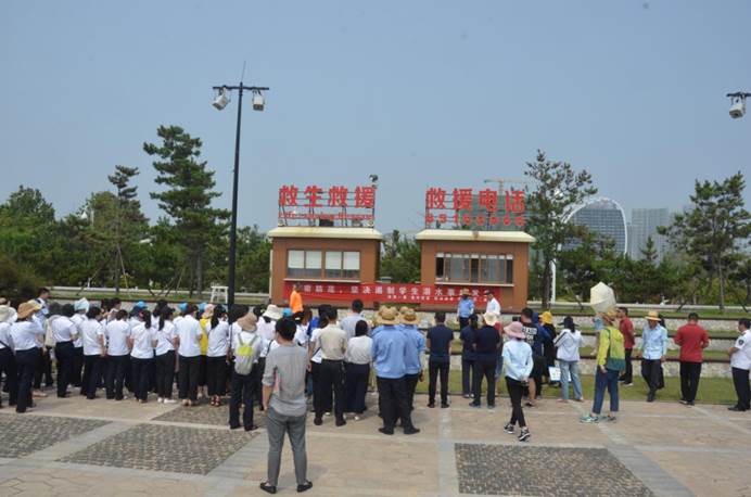 黃發集團旅游公司副總經理傅元彩講解浴場現場游玩注意事項